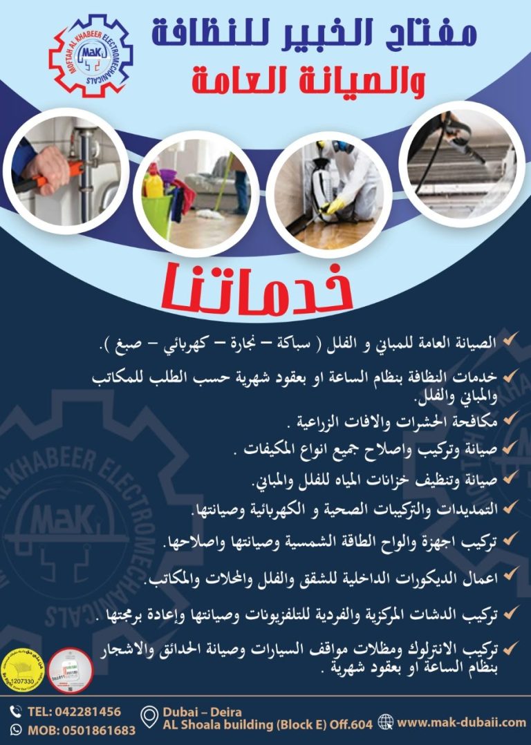 We offer building maintenance, electrical, plumbing, renovation, AC, and pest control services.